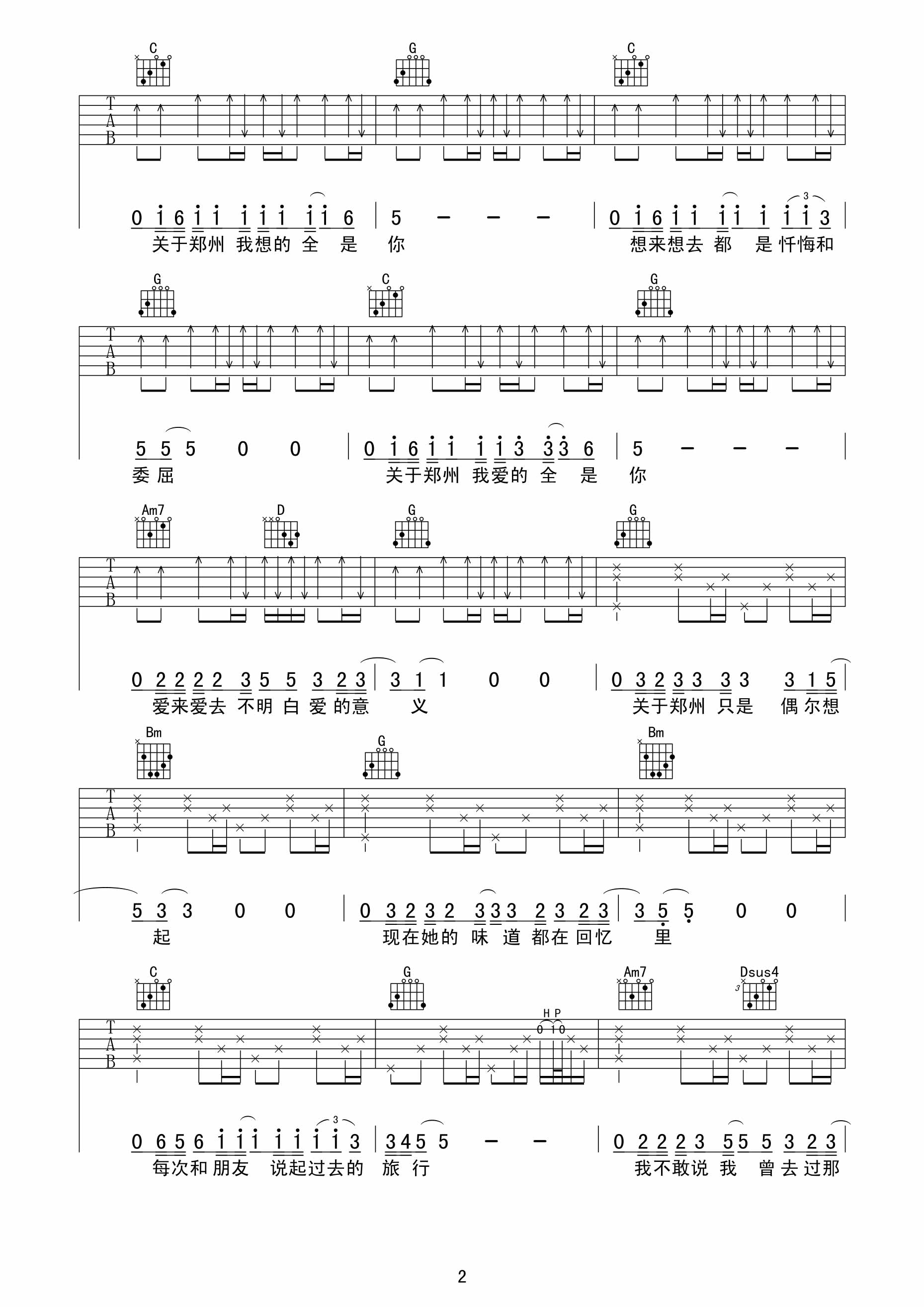 关于郑州的记忆吉他谱,原版歌曲,简单G调弹唱教学,六线谱指弹简谱3张图