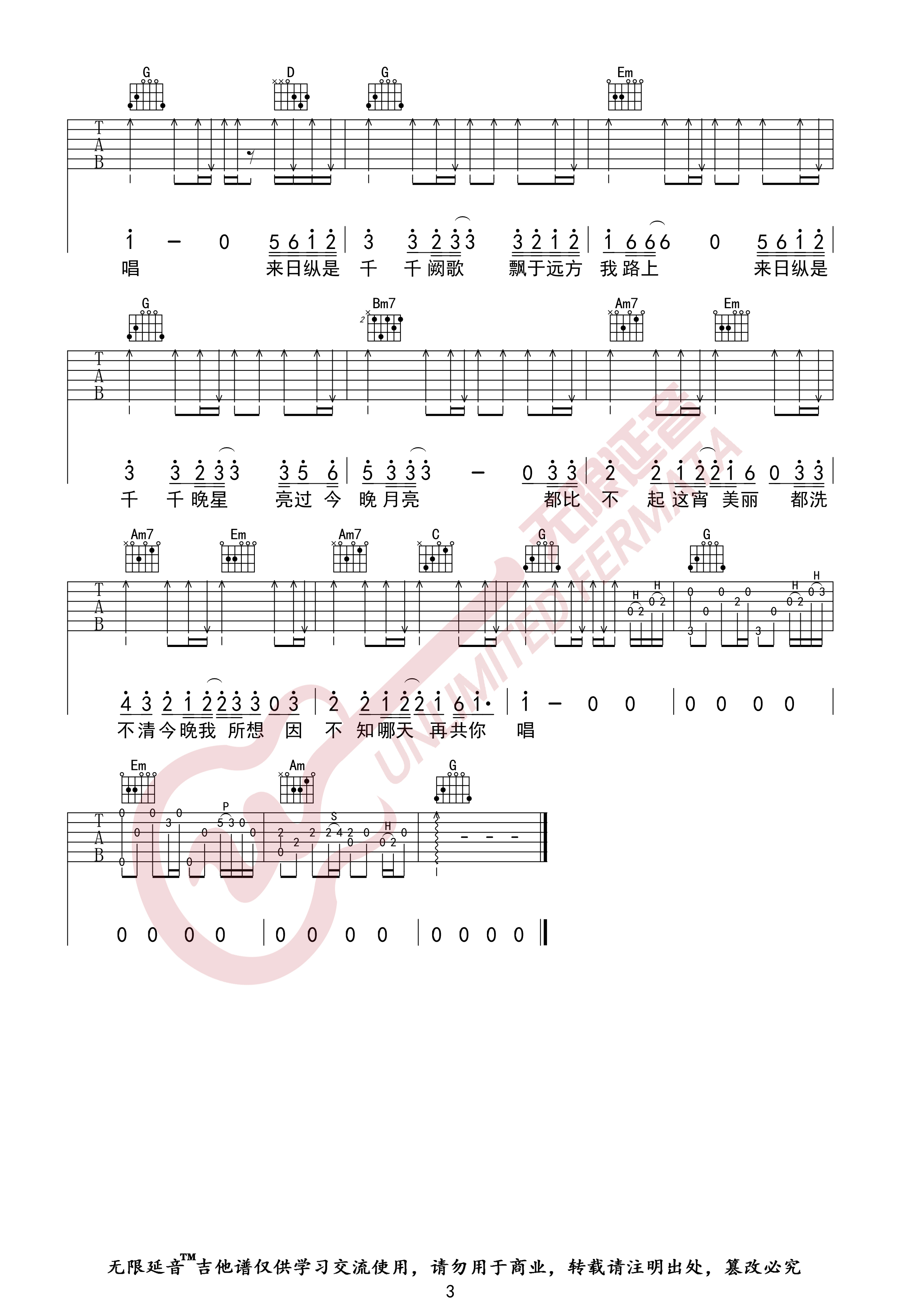 永远都会在吉他谱,取自演唱的歌曲是经典G调指弹编配的曲谱,非常好听的弹唱曲谱,下面3张高清曲谱由吉曲谱网为大家更新分享,有喜欢吉它的朋友欢迎关注!