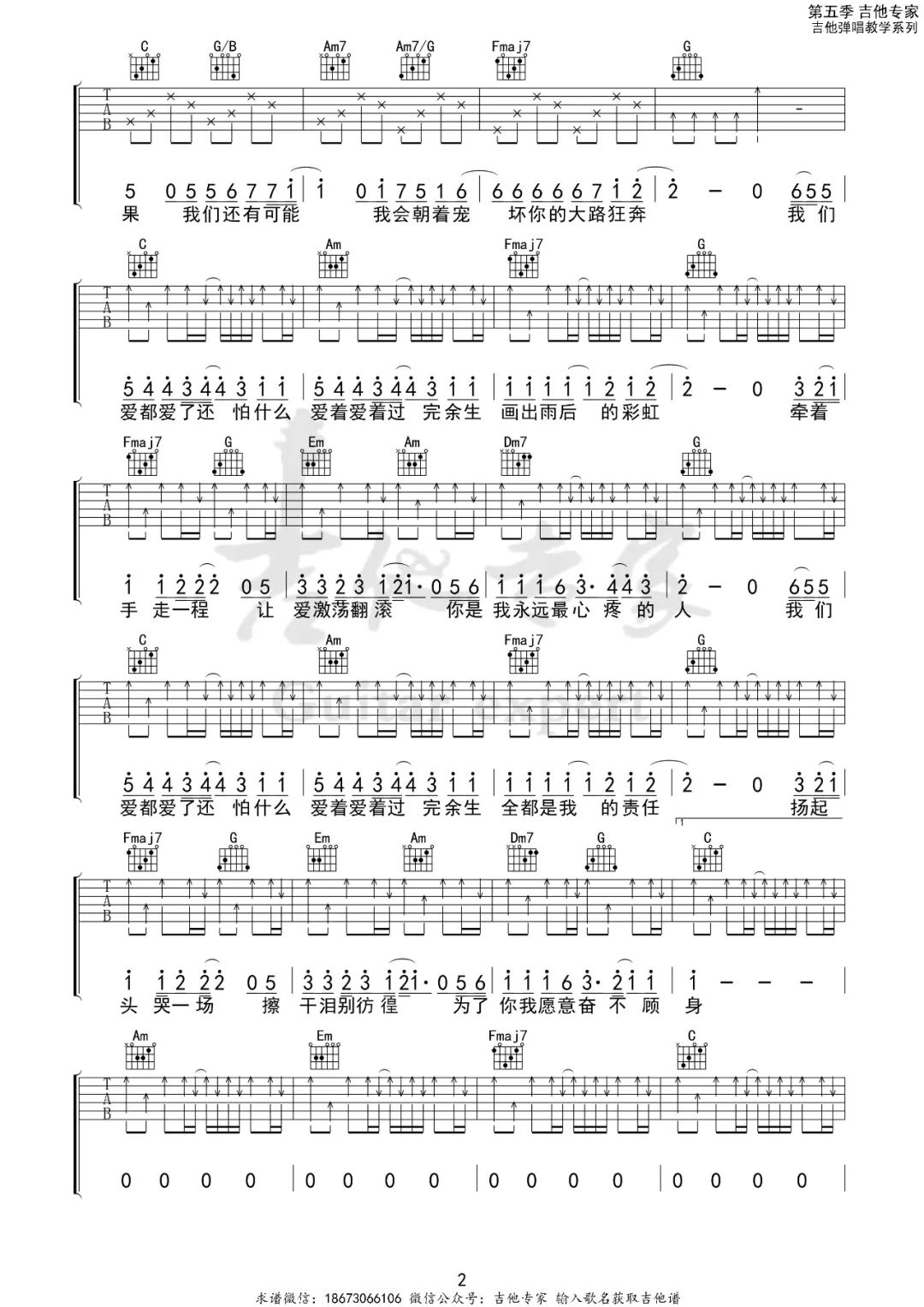 爱都爱了吉他谱,它是演唱的原版歌曲歌曲传达的情感非常深刻和细腻.,由吉他专家制谱,是一首经典简单的吉他谱,适合新手学习和弦指弹的C调编配曲谱,弹唱时可,原调版吉本次教学采用C调,是非常好听的弹唱曲谱,下面完整版高清六线谱由吉它谱大全为大家更新分享。有喜欢吉它的朋友欢迎关注!