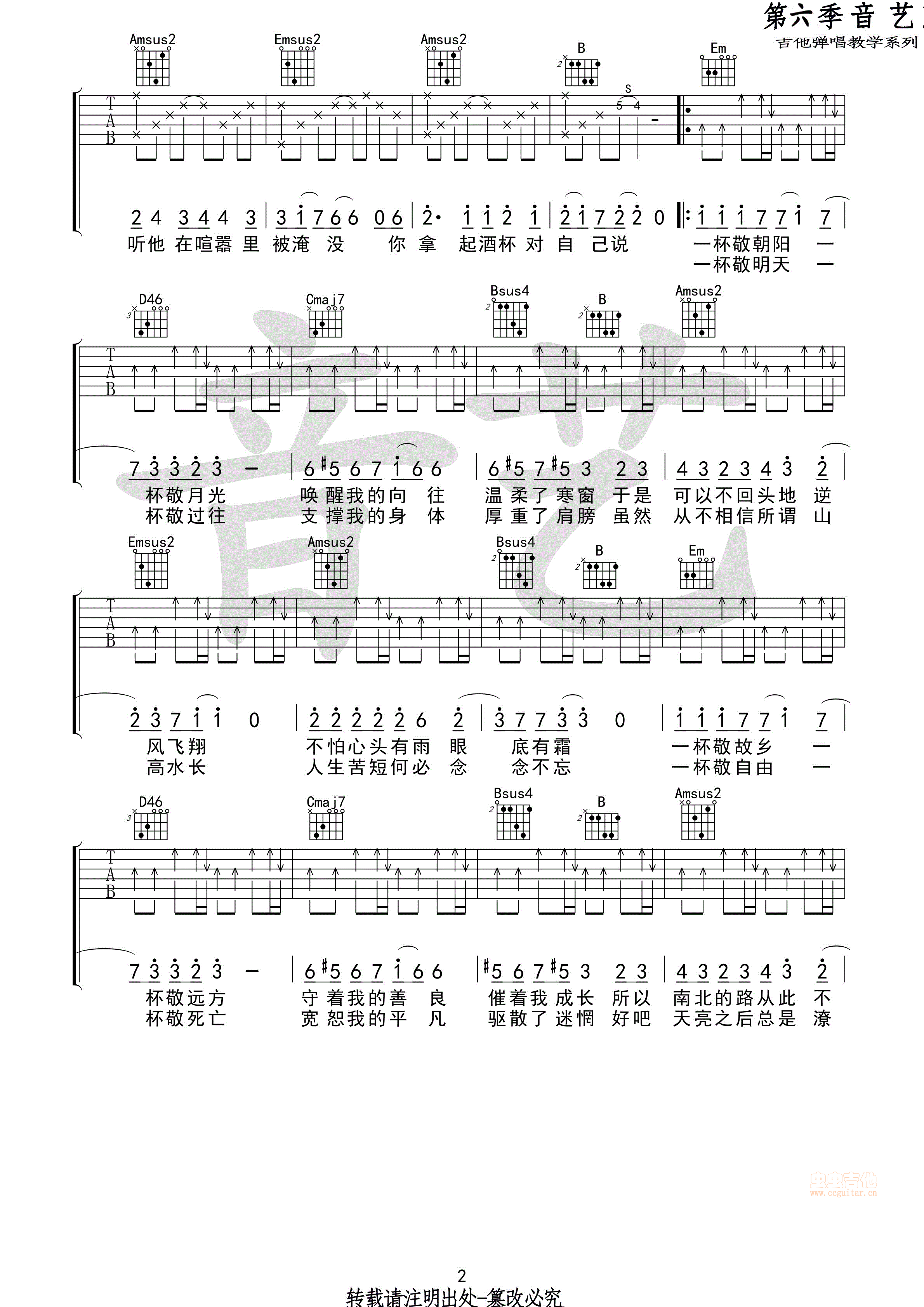 分享消愁吉他谱,消愁由毛不易演唱, ;