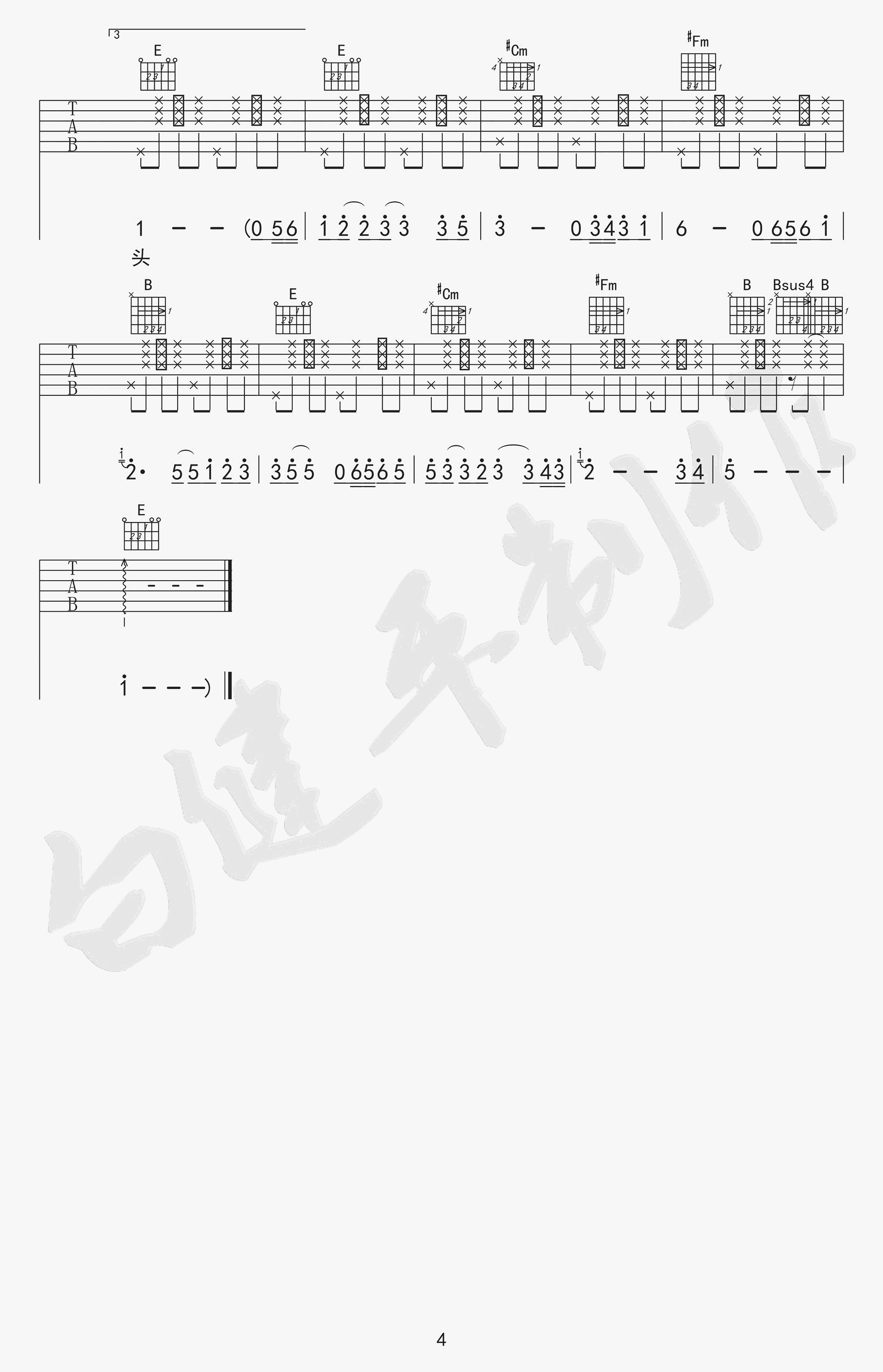 我不会喜欢你吉他谱,原版歌曲,简单E调弹唱教学,六线谱指弹简谱4张图
