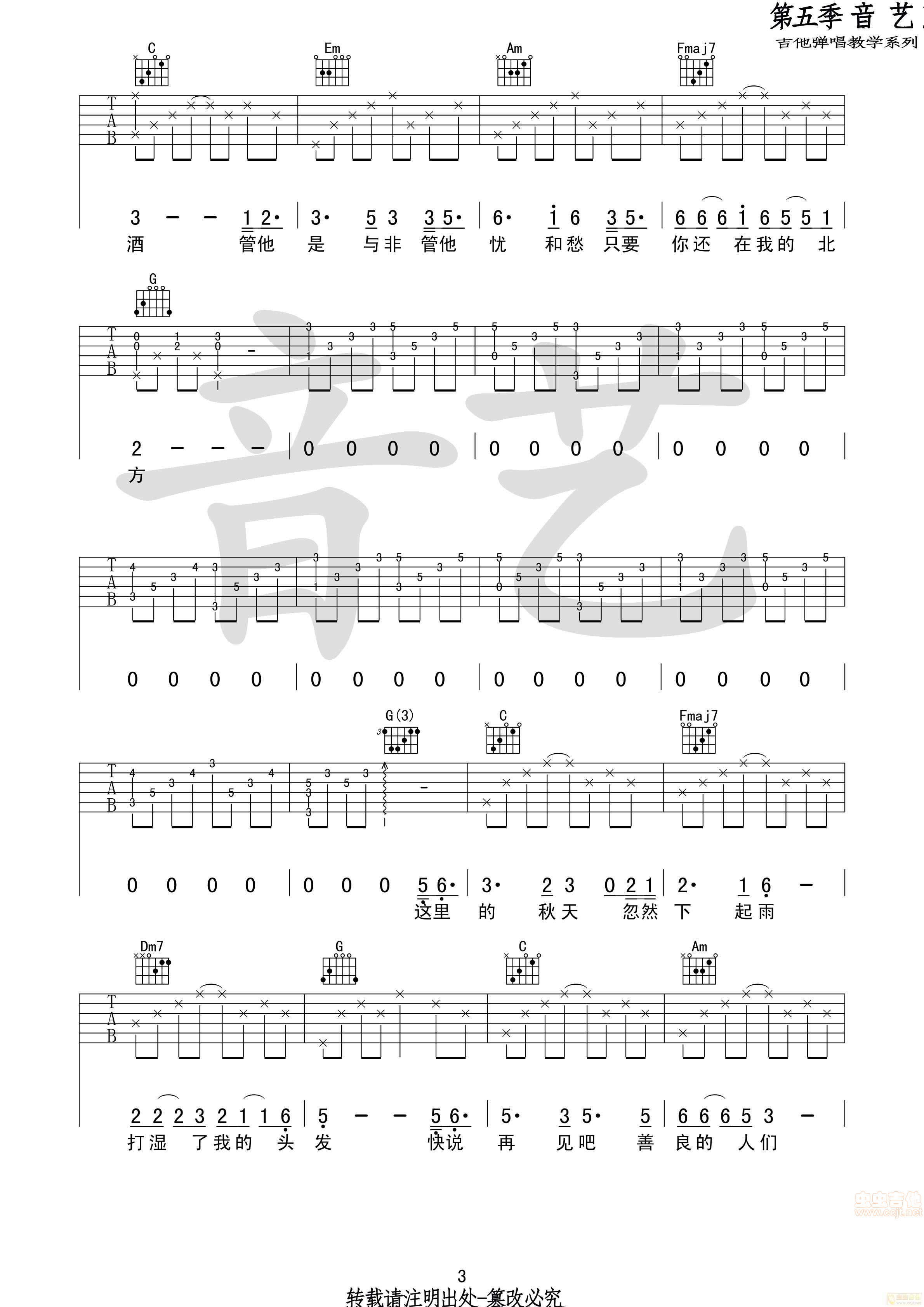 北方女王原版C吉他谱,原版歌曲,简单C调弹唱教学,六线谱指弹简谱6张图