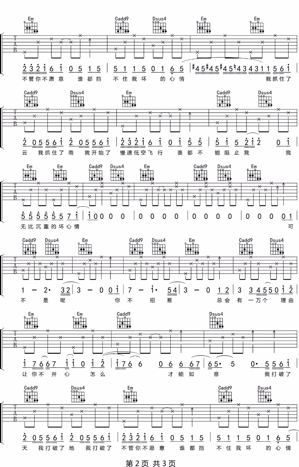 以上就是C调低空飞行吉它谱,如果正是您所寻找的沈以诚六线高清图片谱,希望能收藏本站,这里会源源不断更新各种的曲谱。