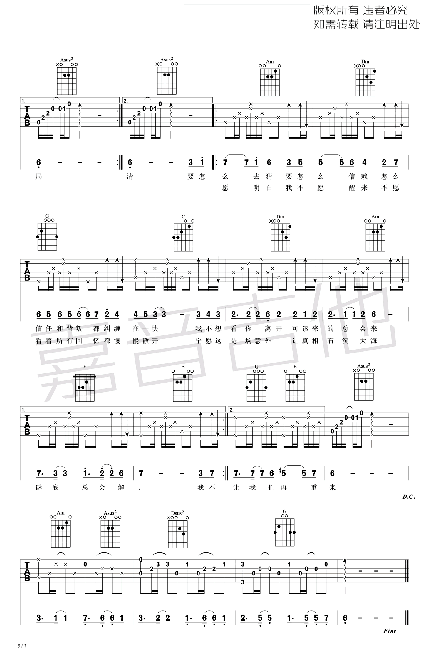 以上就是C调我不愿明白吉它谱,如果正是您所寻找的段奥娟六线高清图片谱,希望能收藏本站,这里会源源不断更新各种的曲谱。
