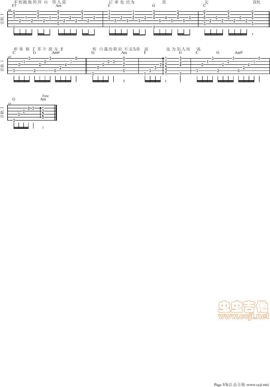 十年秋若演唱版C调GTP吉他谱,原版歌曲,简单C调弹唱教学,六线谱指弹简谱3张图