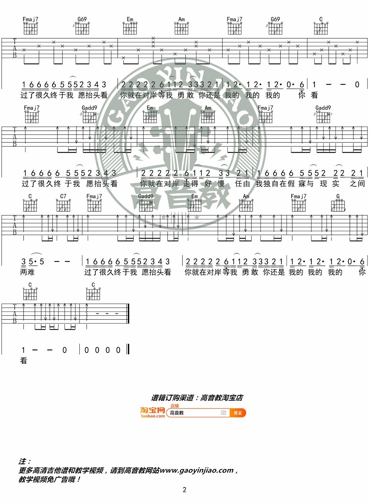 《《走马》吉他谱_陈粒_C调原版弹唱高清六线谱免费分享,这首来自于民谣实力女歌手陈粒演唱的《走马》是一首十分好听的歌曲,歌曲一发行就引得很多喜欢民谣的朋友争相翻弹、翻唱。本次分享来自高音教团队的《走马》吉他谱,采用C调指法原版编配,变调夹可根据自己的情况酌情选择。