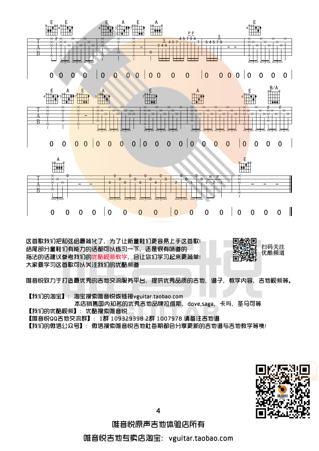 我不会喜欢你吉他谱,原版歌曲,简单E调弹唱教学,六线谱指弹简谱4张图
