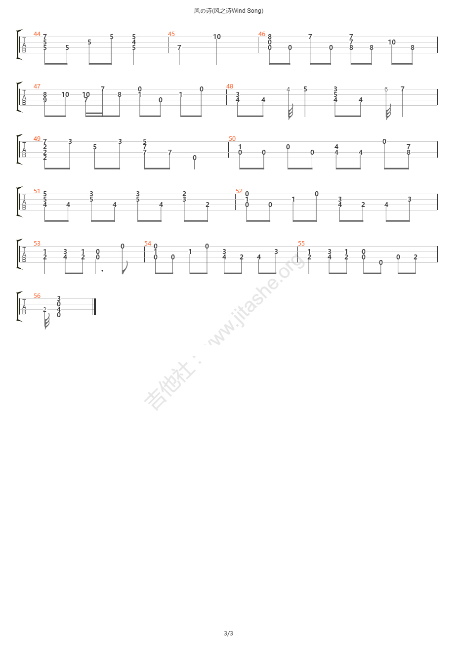 风之诗吉他谱,原版押尾歌曲,简单指弹曲谱,高清六线乐谱