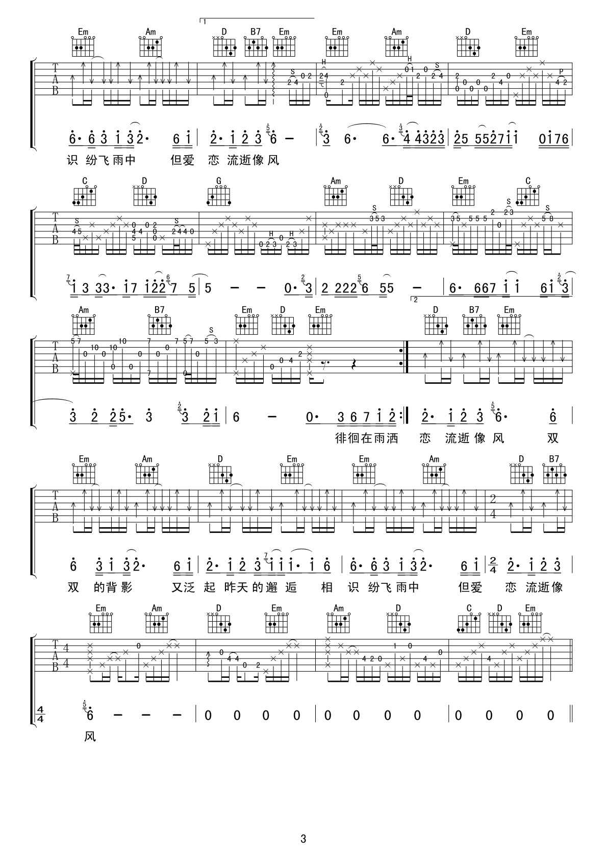 《雨中的恋人们吉他谱》_宝丽金_G调 图三