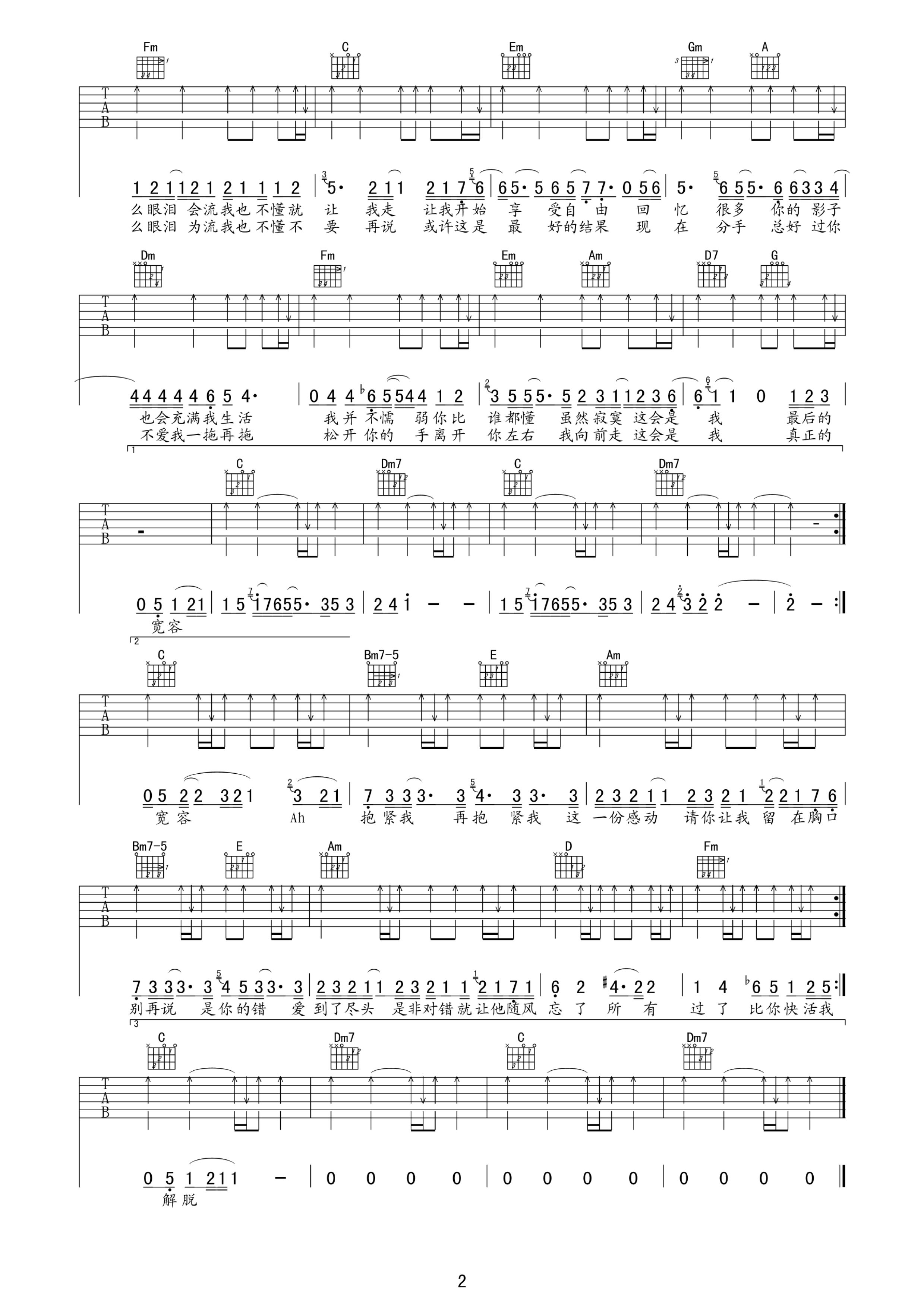我不难过吉他谱,它是孙燕姿演唱的歌曲,由网络转载编配制谱,是一首经典歌曲编配的E调指弹编配的曲谱,