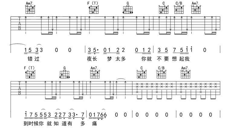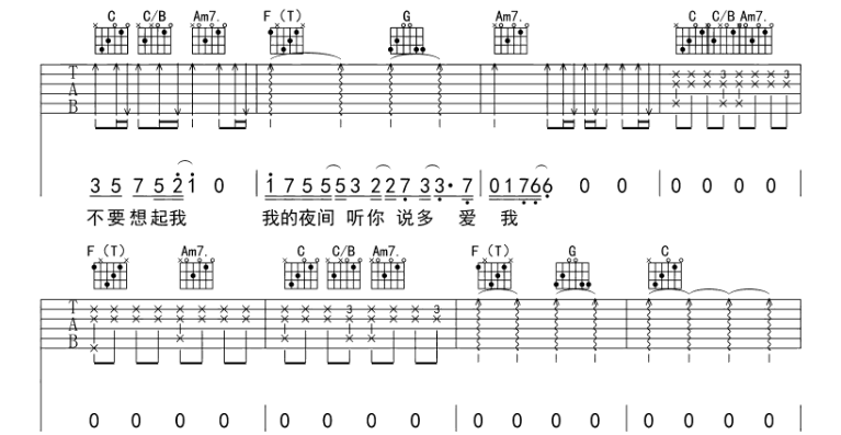 你就不要想起我吉他谱,原版歌曲,简单C调弹唱教学,六线谱指弹简谱7张图