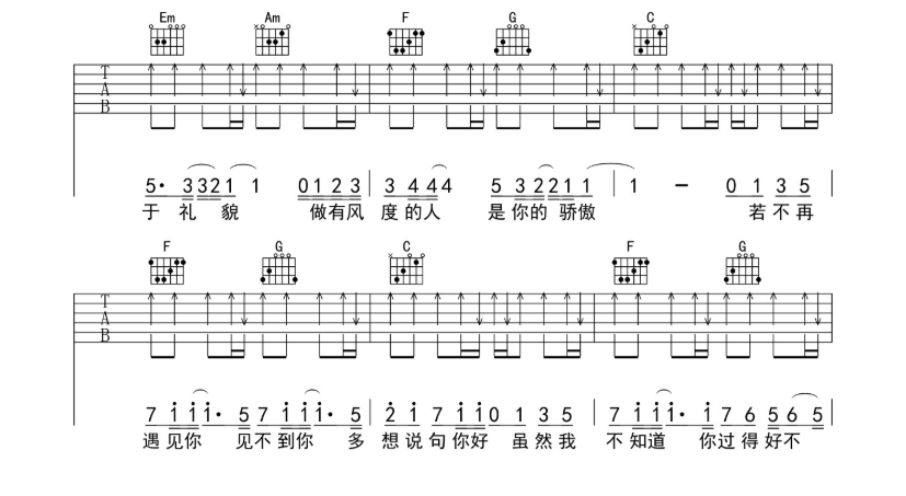 我不会喜欢你吉他谱,取自演唱的歌曲是经典E调指弹编配的曲谱,非常好听的弹唱曲谱,下面4张高清曲谱由吉曲谱网为大家更新分享,有喜欢吉它的朋友欢迎关注!