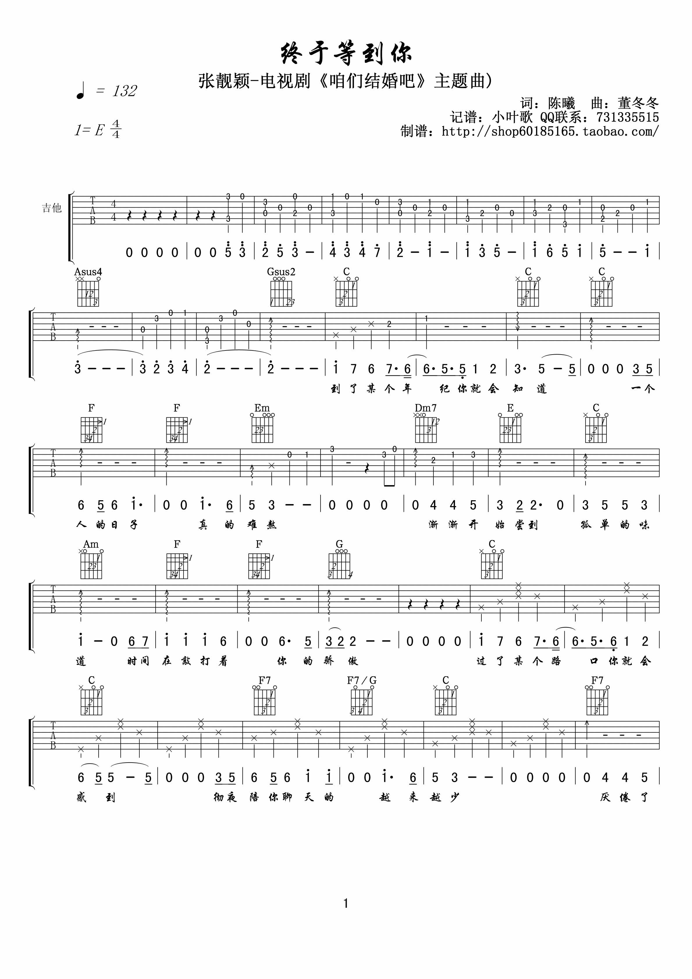 够爱吉他谱,取自演唱的歌曲是经典F调指弹编配的曲谱,非常好听的弹唱曲谱,下面3张高清曲谱由吉曲谱网为大家更新分享,有喜欢吉它的朋友欢迎关注!