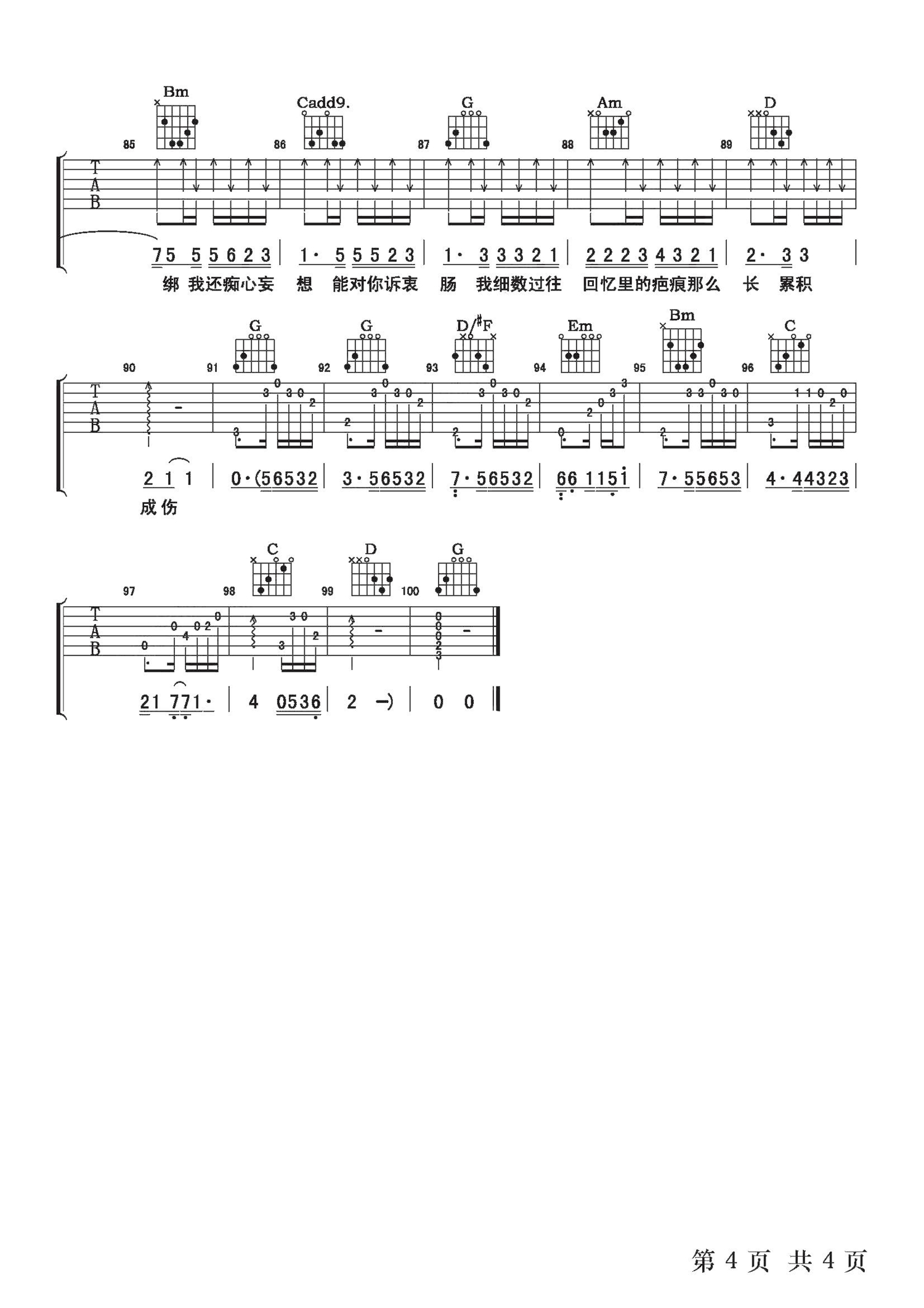 《回忆那么伤吉他谱》_孙子涵_A调 图四