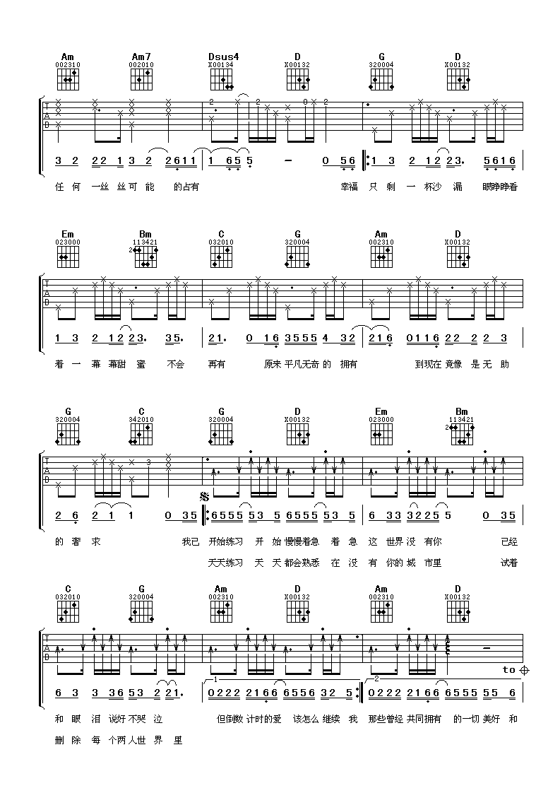 以上就是4/4节拍双吉他版的练习弹唱简谱完整内容,希望这个简单六线高清图片教学谱能帮到您,也希望您能收藏本站,这里每天源源不断更新各种简单入门曲谱。