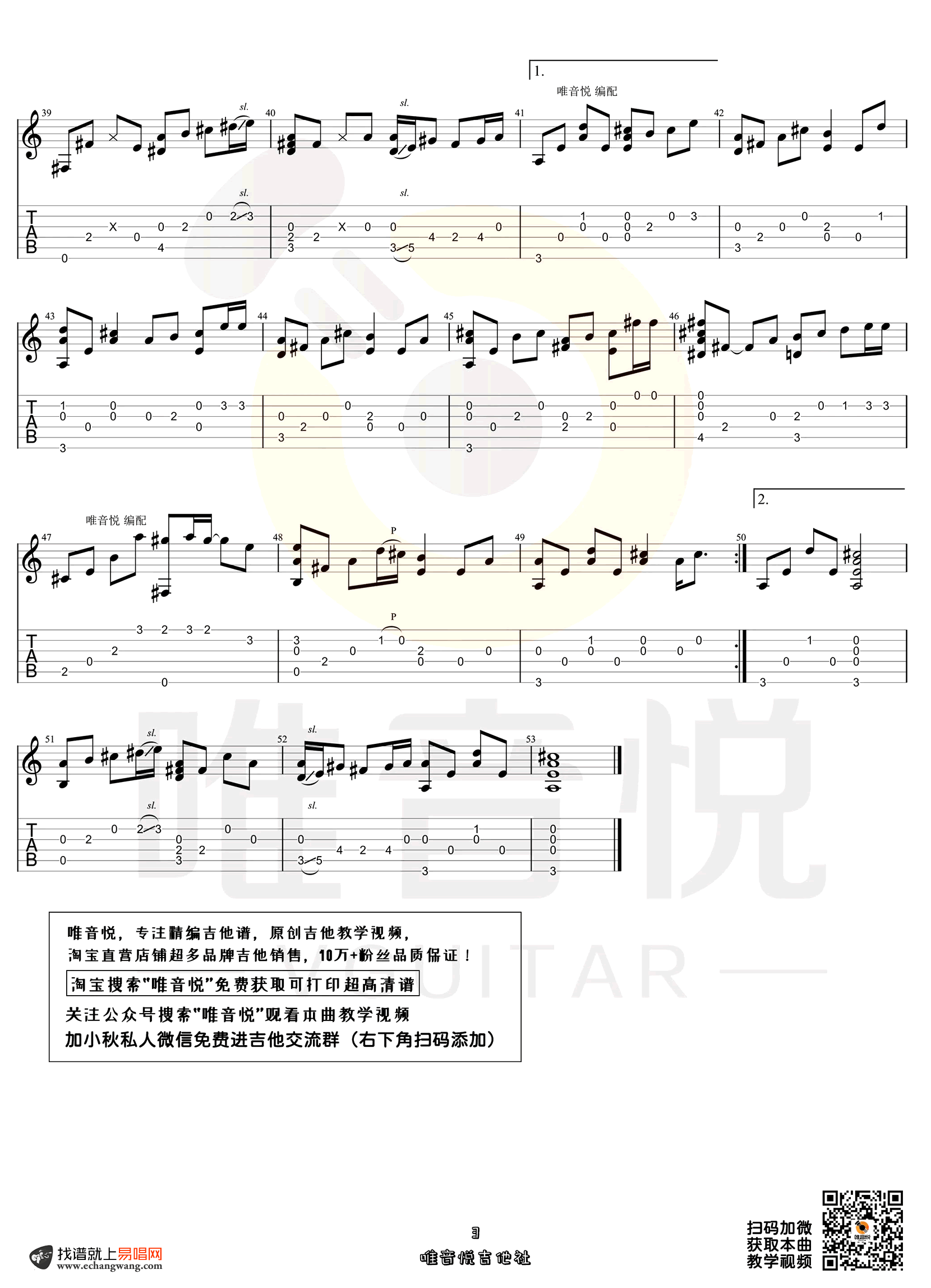 花海指弹谱,作周杰伦歌曲,简单指弹教学简谱,唯音悦六线谱图片