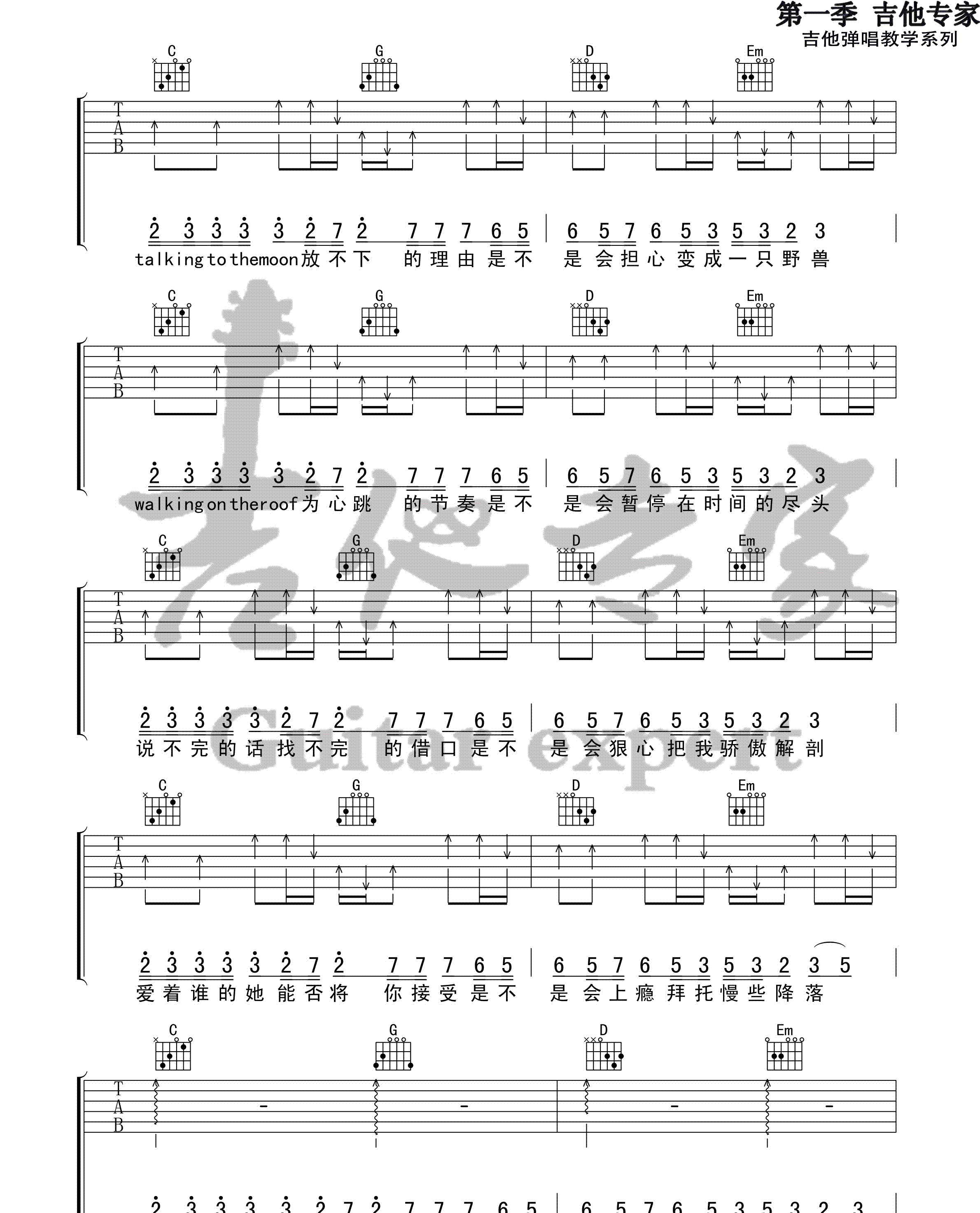 心如止水吉他谱,原版歌曲,简单_图片弹唱教学,六线谱指弹简谱完整版_C调_吉他图片谱5张图