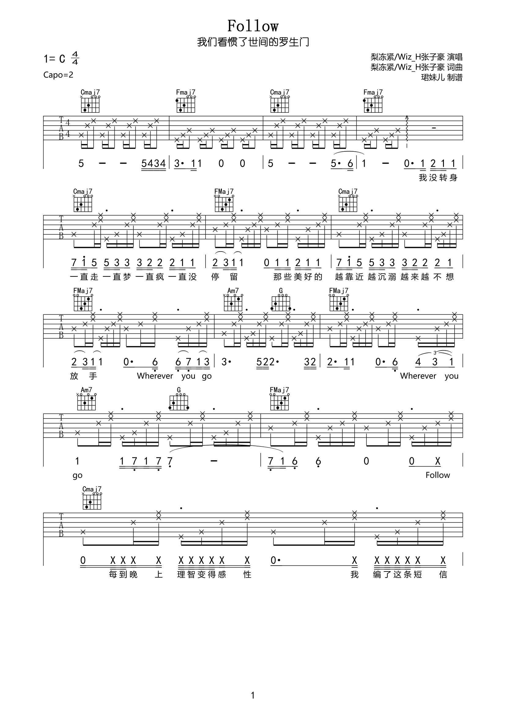 静止吉他谱,取自演唱的歌曲是经典G调指弹编配的曲谱,非常好听的弹唱曲谱,下面4张高清曲谱由吉曲谱网为大家更新分享,有喜欢吉它的朋友欢迎关注!