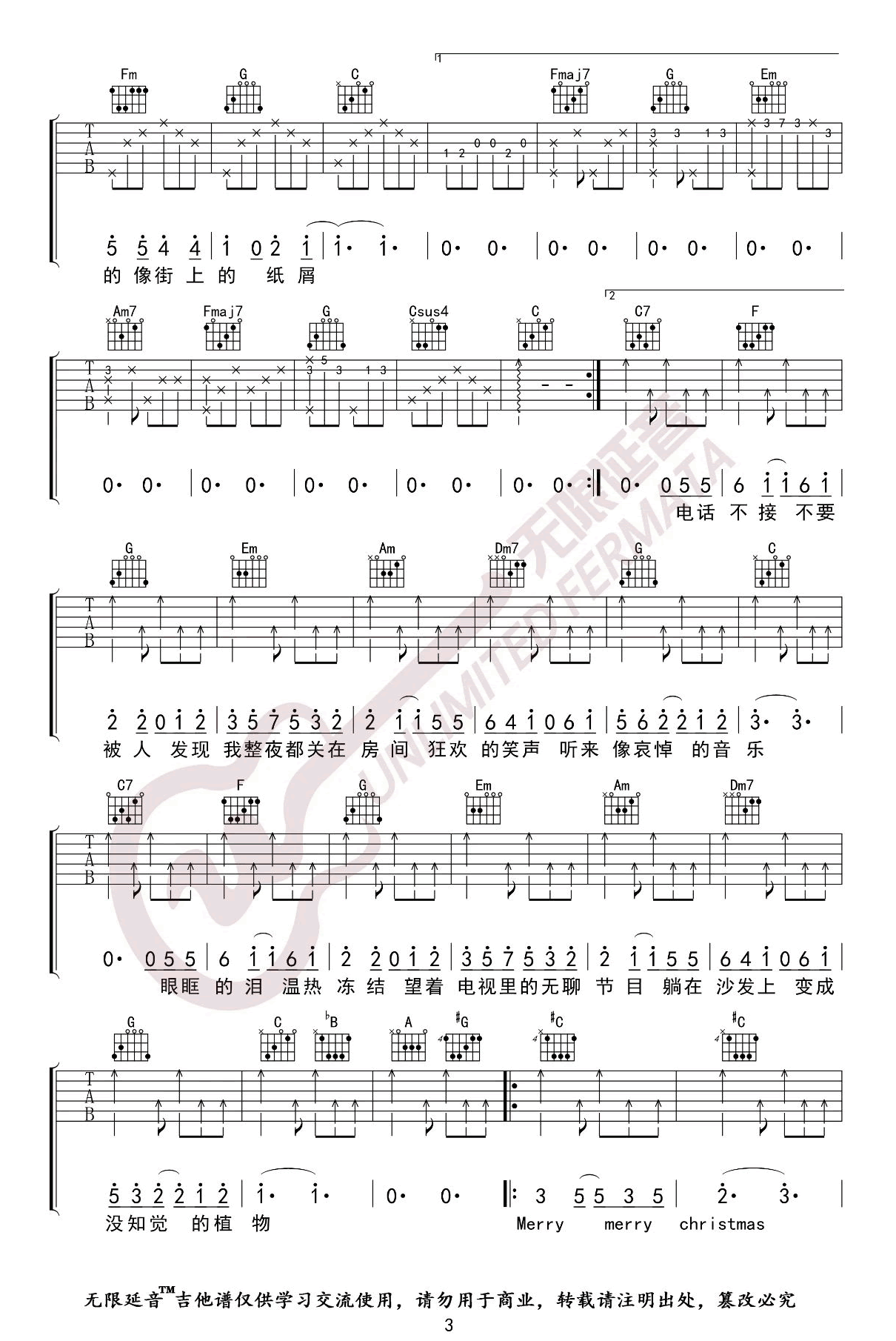 圣诞结吉他谱,何启弘李峻歌曲,简单指弹教学简谱,无限延音六线谱图片