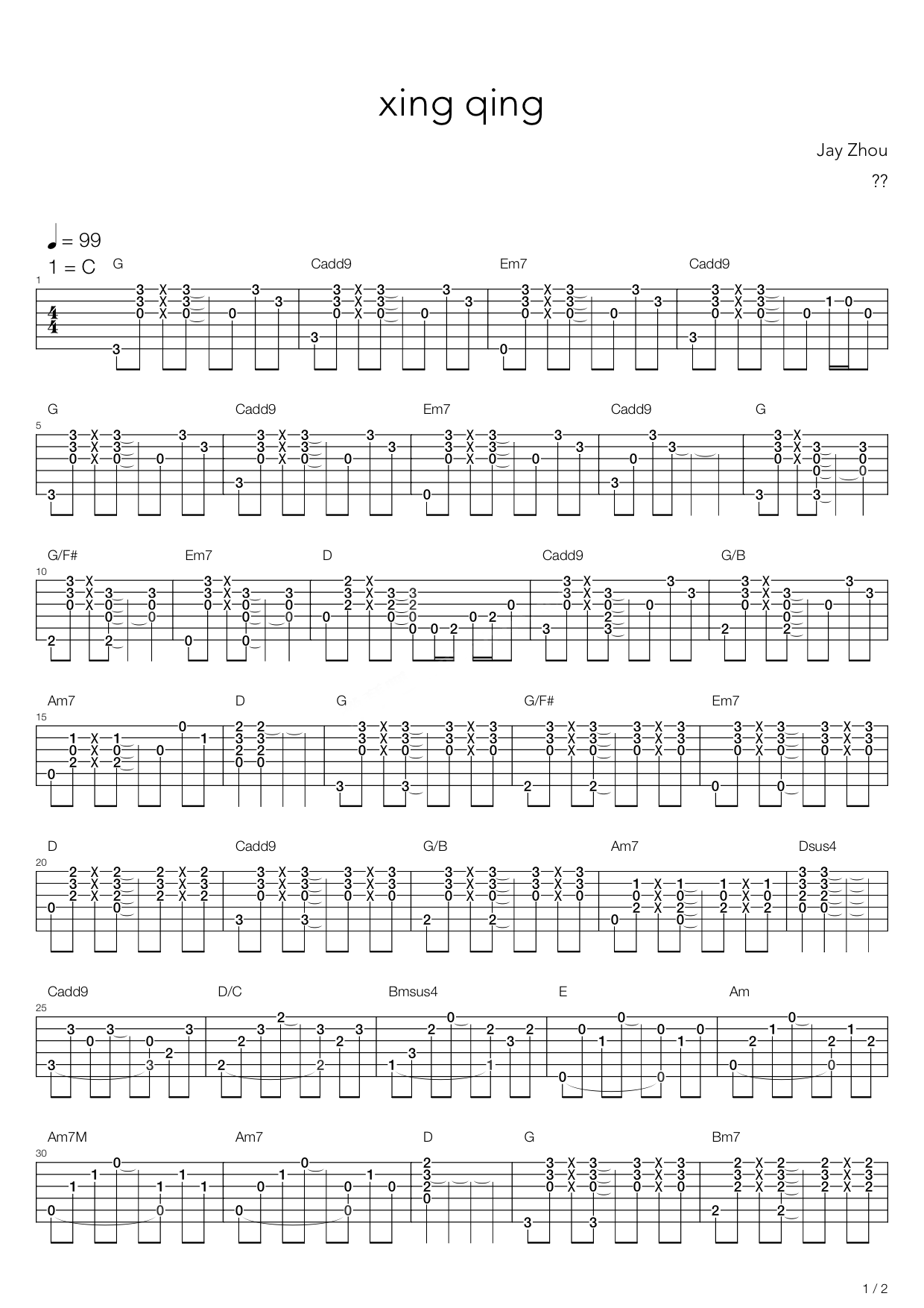 One Day吉他谱,取自演唱的歌曲是经典G调指弹编配的曲谱,非常好听的弹唱曲谱,下面1张高清曲谱由吉曲谱网为大家更新分享,有喜欢吉它的朋友欢迎关注!