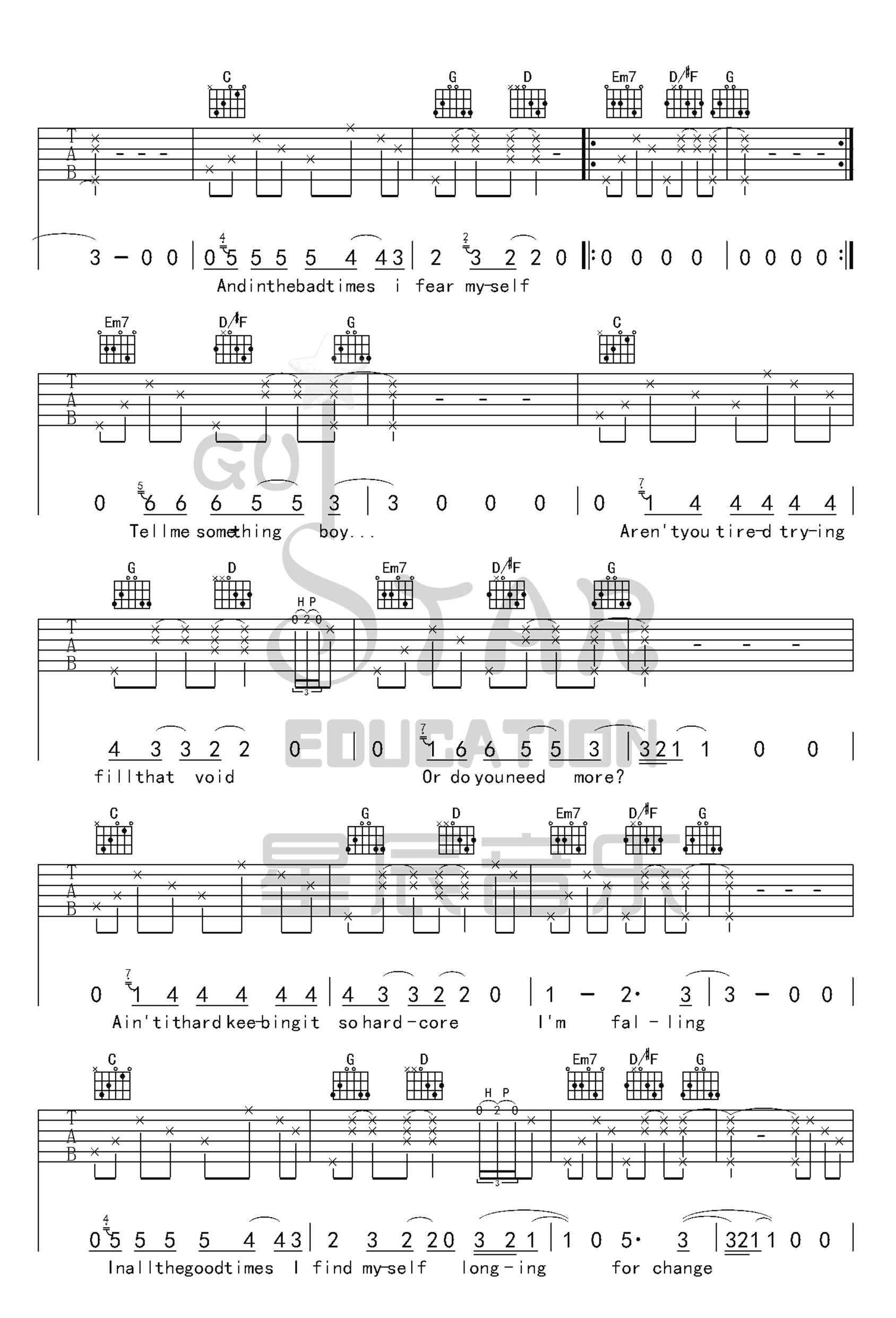 《Shallow吉他谱》_Lady Gaga、Bradley Cooper_Lady Gaga_G调六线谱完整版_G调 图三