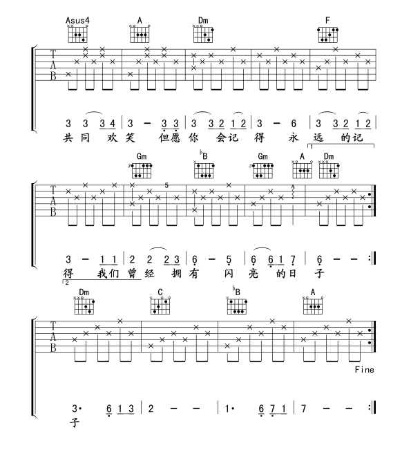 《闪亮的日子吉他谱》_刘文正_罗大佑_图片谱标准版_F调 图二