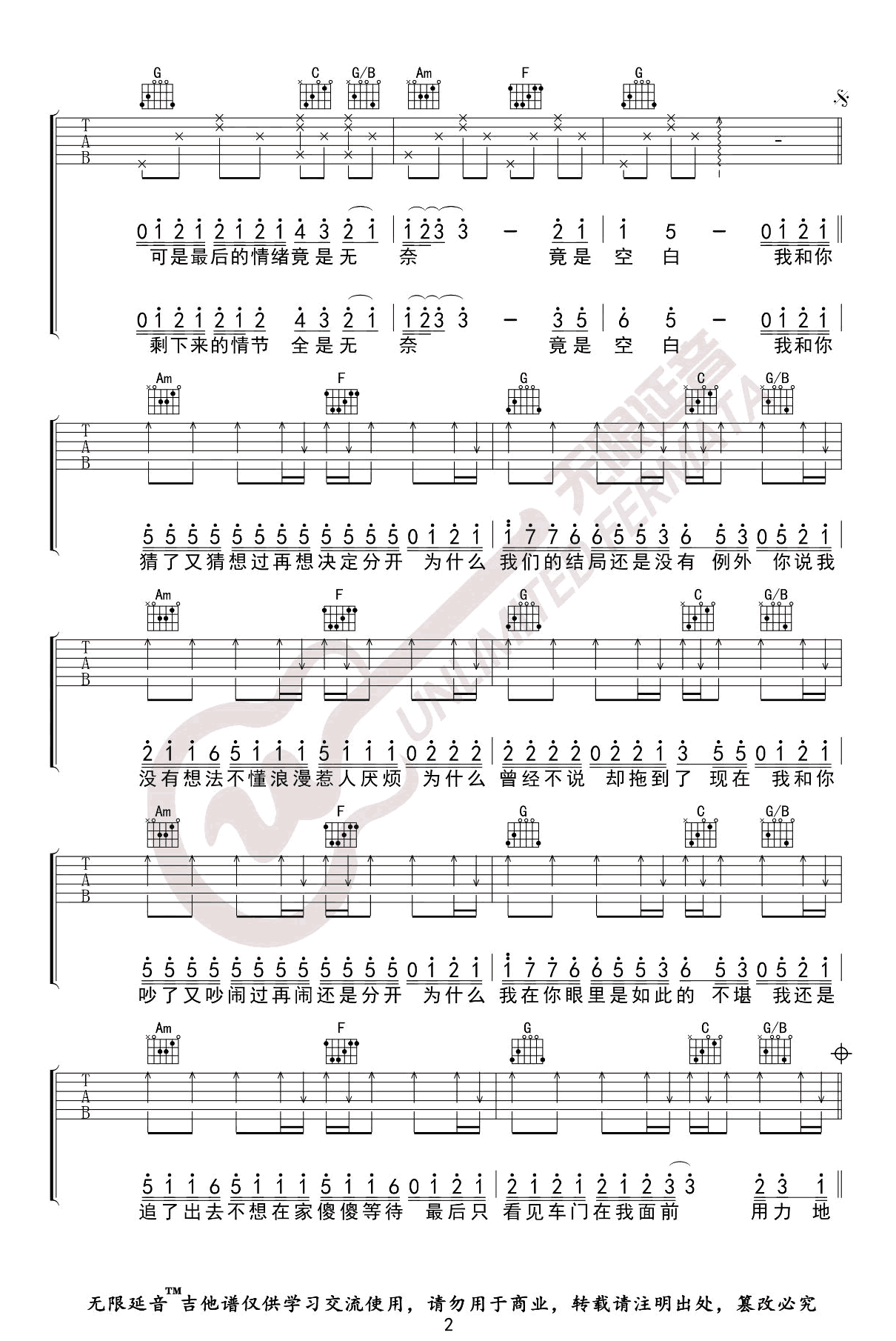 张叶蕾《还是分开》吉,张叶蕾歌曲,C调简单指弹教学简谱,无限延音六线谱图片