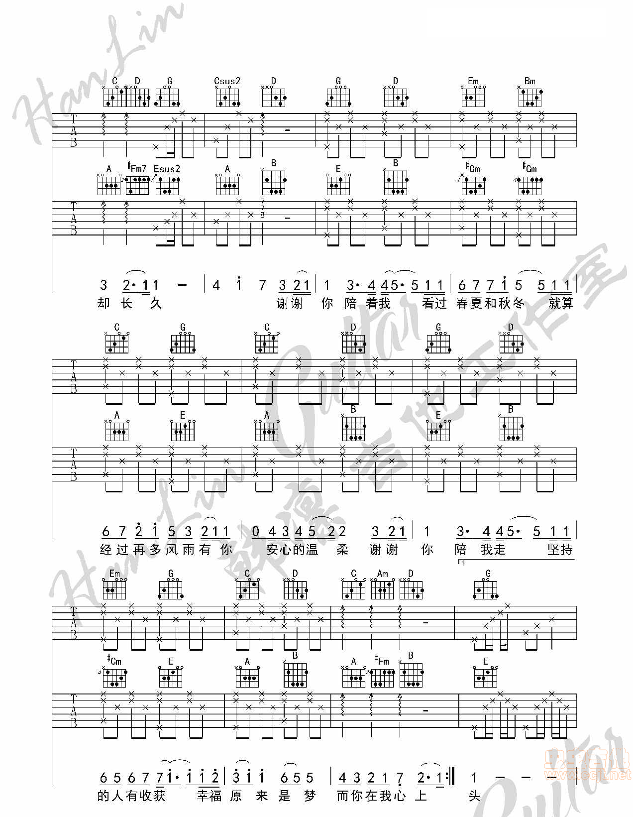 永远都会在吉他谱,取自演唱的歌曲是经典G调指弹编配的曲谱,非常好听的弹唱曲谱,下面3张高清曲谱由吉曲谱网为大家更新分享,有喜欢吉它的朋友欢迎关注!