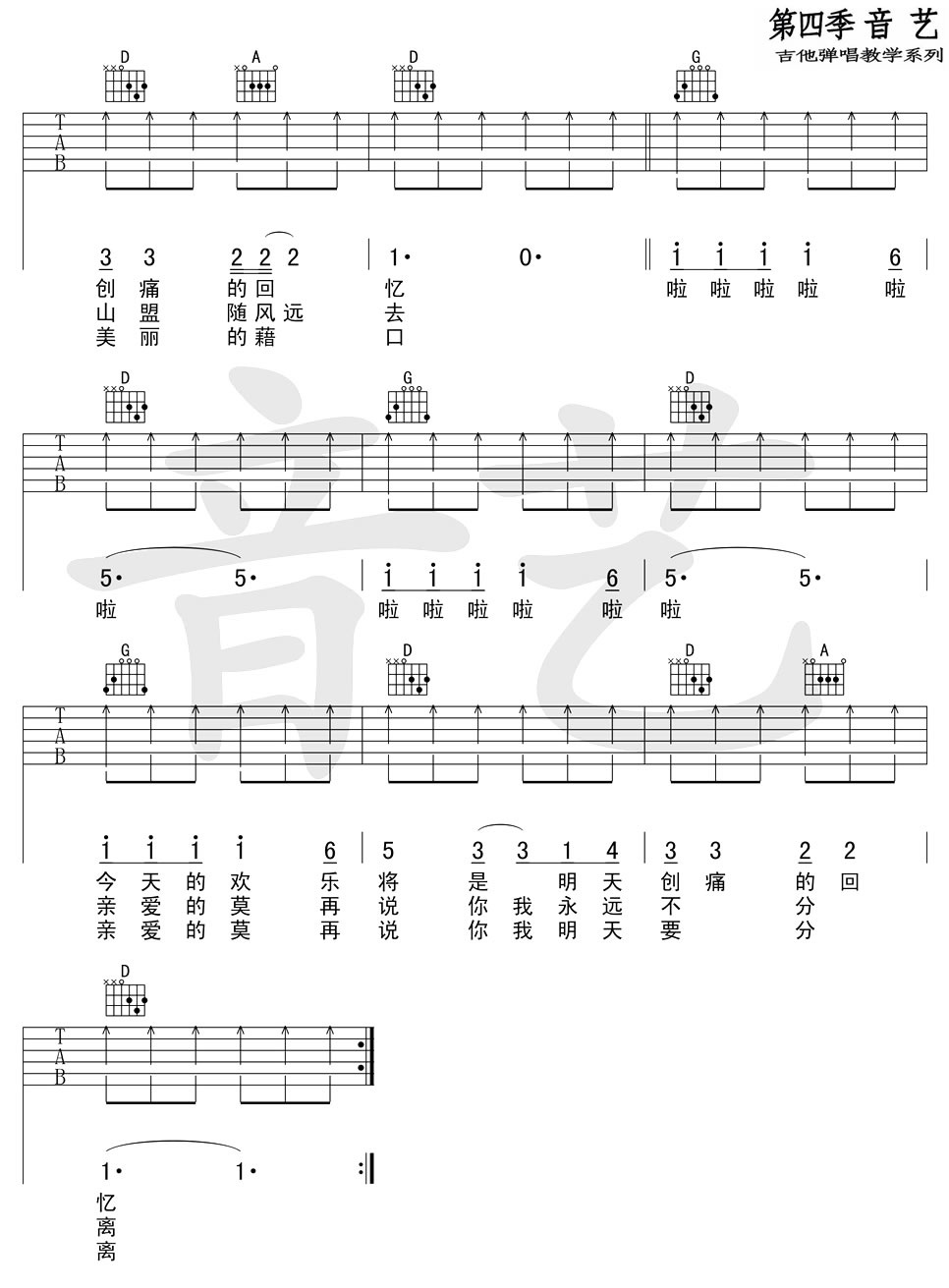 遥远的你吉他谱,原版歌曲,简单陈曦_弹唱教学,六线谱指弹简谱完整版_D调_吉他图片谱2张图