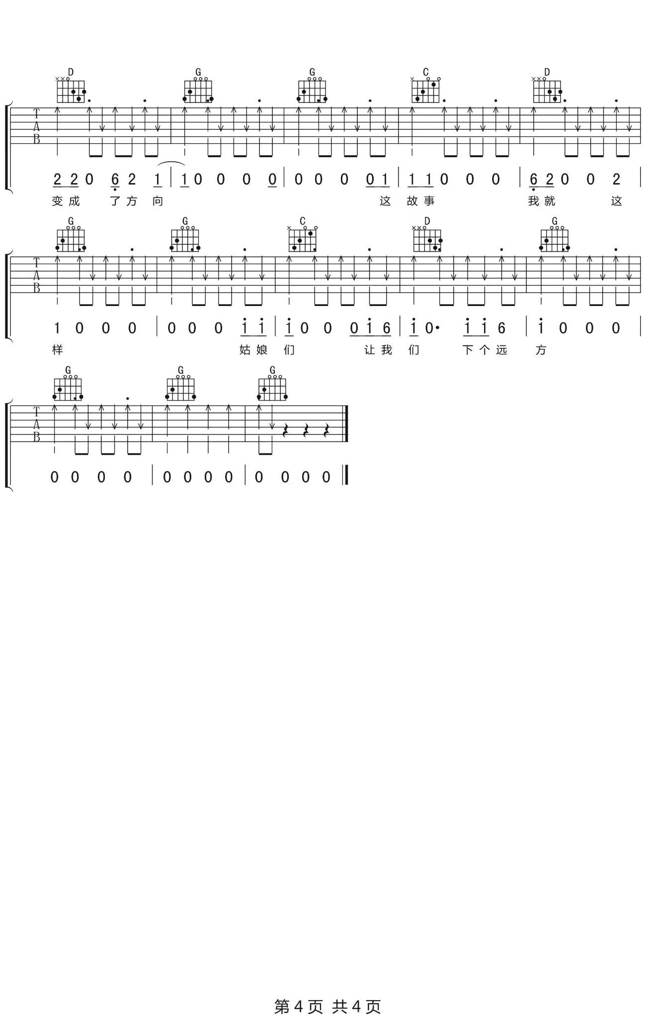 王北车姑娘吉他谱,它是王北车演唱的原版歌曲,这首歌的歌词让我想起了自己的经历.经典歌曲编配的高清指弹简单版吉他谱子,六线简谱是网络制作,是非常好听的入门弹唱曲谱,下面为大家分享高清四张图片谱,有喜欢吉它的朋友欢迎关注!