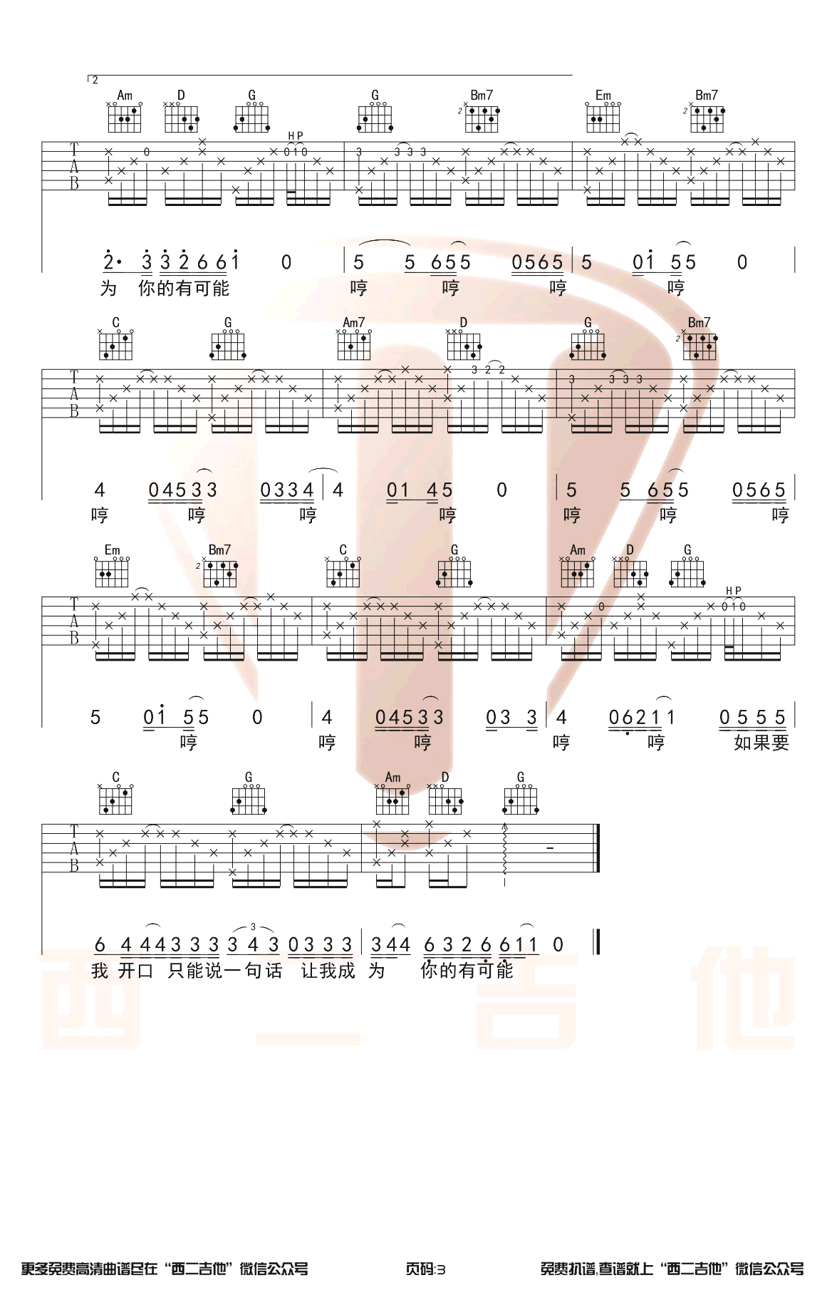 曾轶可有可能的夜晚吉他谱,简单三张原版指弹曲谱,曾轶可高清六线乐谱