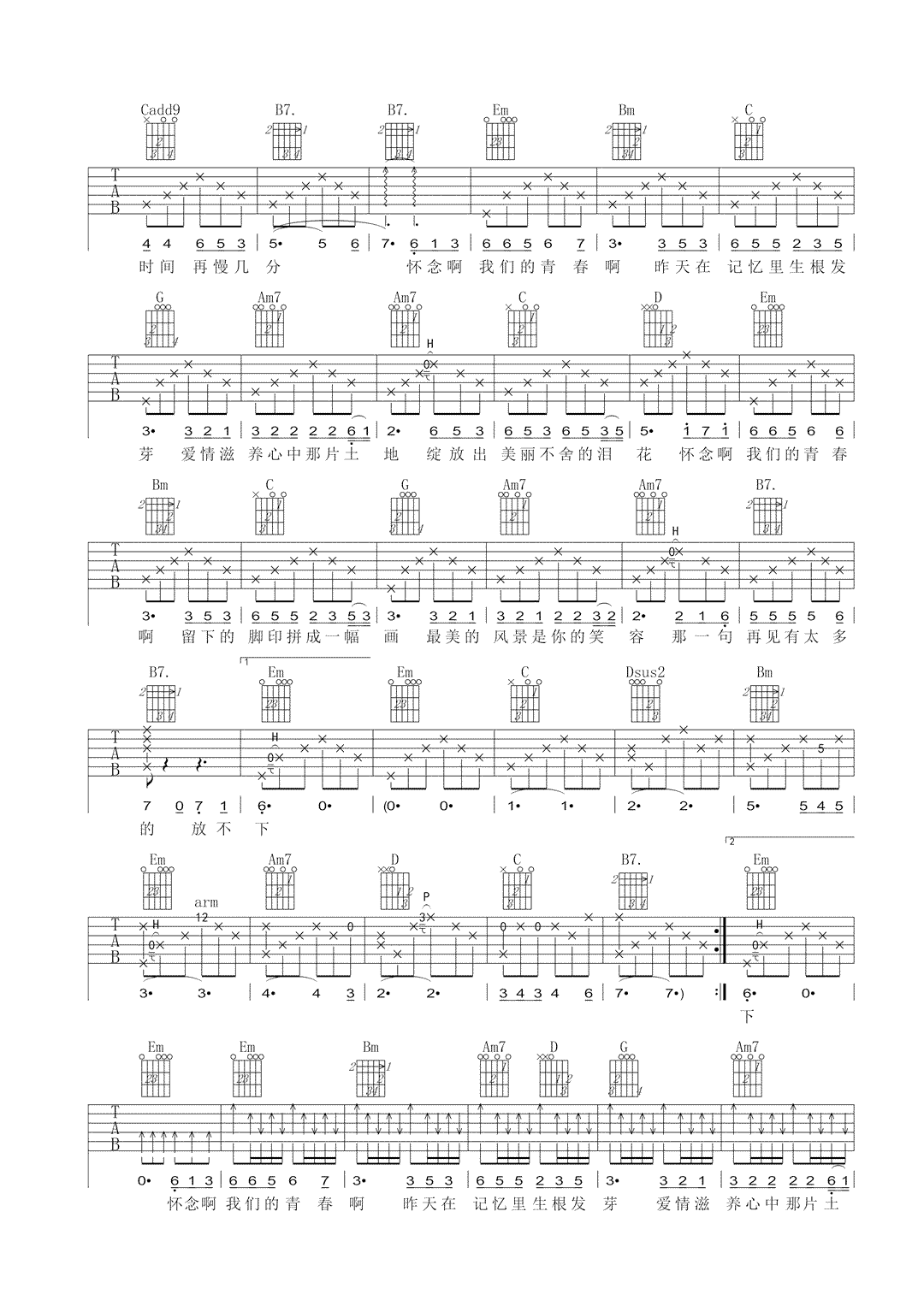 旭日阳刚怀念青春吉他谱,简单三张原版指弹曲谱,旭日阳刚高清六线乐谱