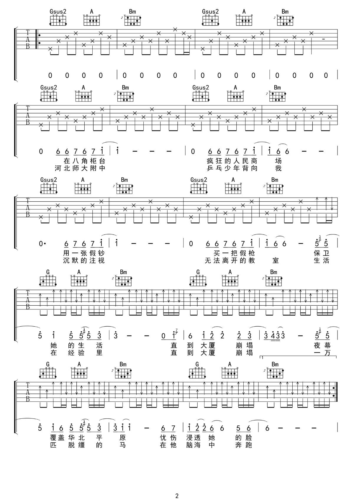 包师语杀死那个石家庄人吉他谱,简单三张原版指弹曲谱,包师语高清六线乐谱